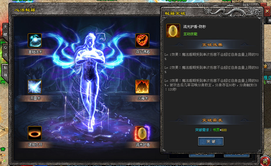 4)战士:风刺剑法-无尽。法师:天雷术-护佑。术士:霹雳神符-血符。